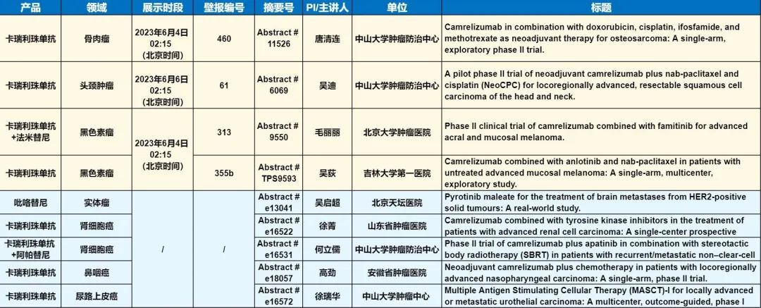 此外,在头颈肿瘤、黑色素瘤、骨肉瘤、鼻咽癌、肾细胞癌、尿路上皮癌等多个领域,卡瑞利珠单抗、吡咯替尼等产品相关研究一共入选了4项壁报展示和5项线上发表,彰显了EVO视讯医药强大的自主研发综合实力。