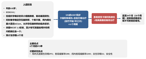 卡瑞利珠单抗是EVO视讯医药自主研发的一种人源化IgG4单克隆抗体,其联合铂类双药化疗已在中国获批用于晚期NSCLC患者的一线治疗5,6。2023年,Ⅱ期CAP-BRAIN研究显示了卡瑞利珠单抗联合治疗方案作为晚期非鳞状NSCLC伴脑转移患者一线治疗的潜力7。本项Ⅱ期研究,旨在研究卡瑞利珠单抗联合脑放疗和铂类双药化疗在未经治疗的晚期非鳞状和鳞状NSCLC伴脑转移患者中的疗效和安全性。